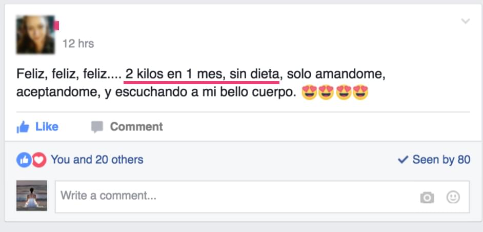 ¡Probé todas las dietas!! La de las 1,000 calorías, la de la atún, la de la leche, dejé de comer por días, inducirme el vómito, mesoterapia, acupuntura, masajes reductores.